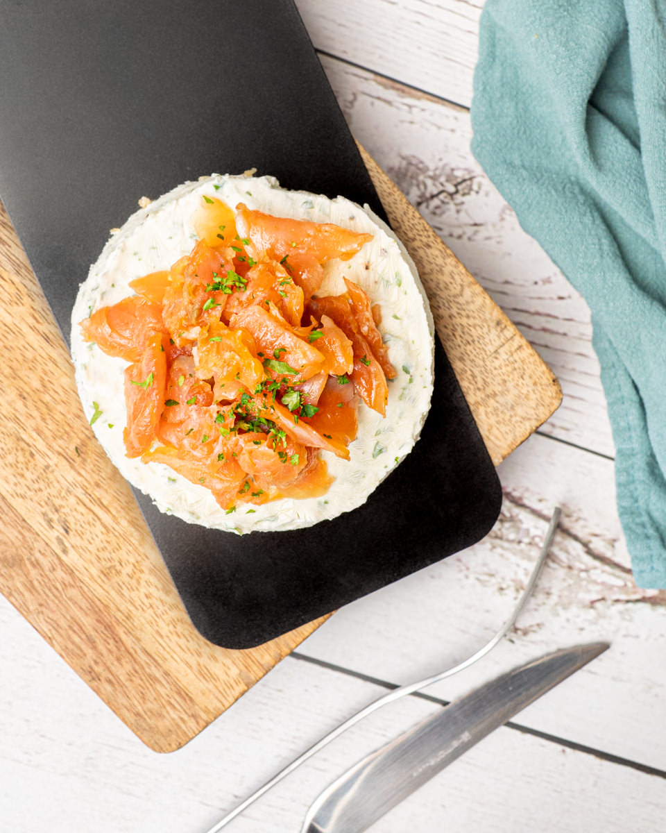 Ce plat simple et gourmand se compose d’un fond de sablé, d’une crème de fromage fouetté bien lisse, et d’une touche de truite fumée pour le côté frais et savoureux.