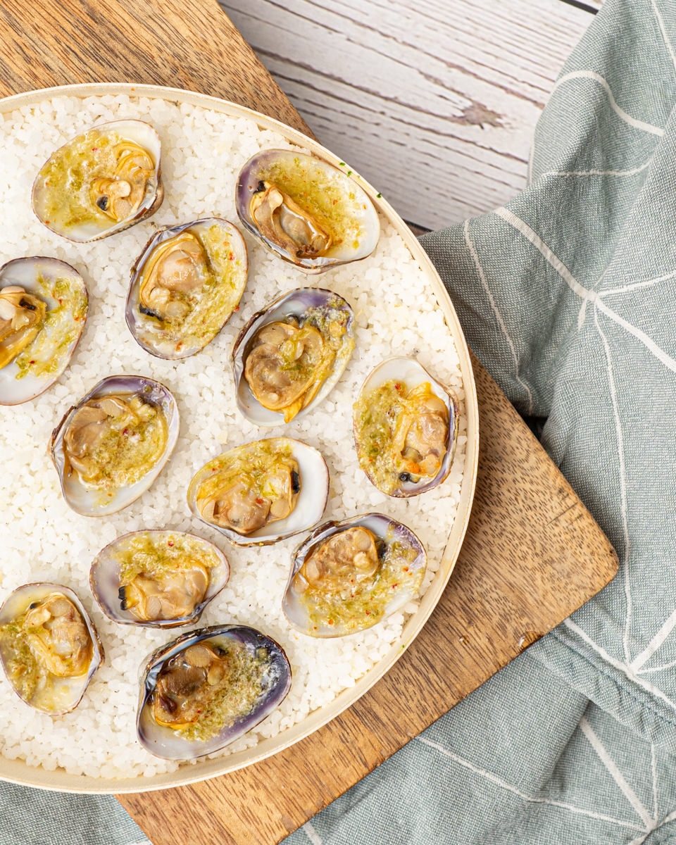 - 2 Choix – Coquillages farcis : Palourdes, Huîtres, Moules farcies